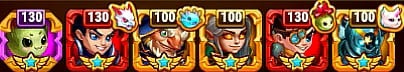 - 手持ちのヒーローの強化具合で支援ペットは変えてください。上記の編成は参考