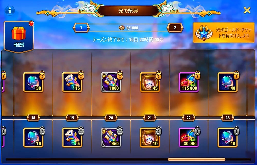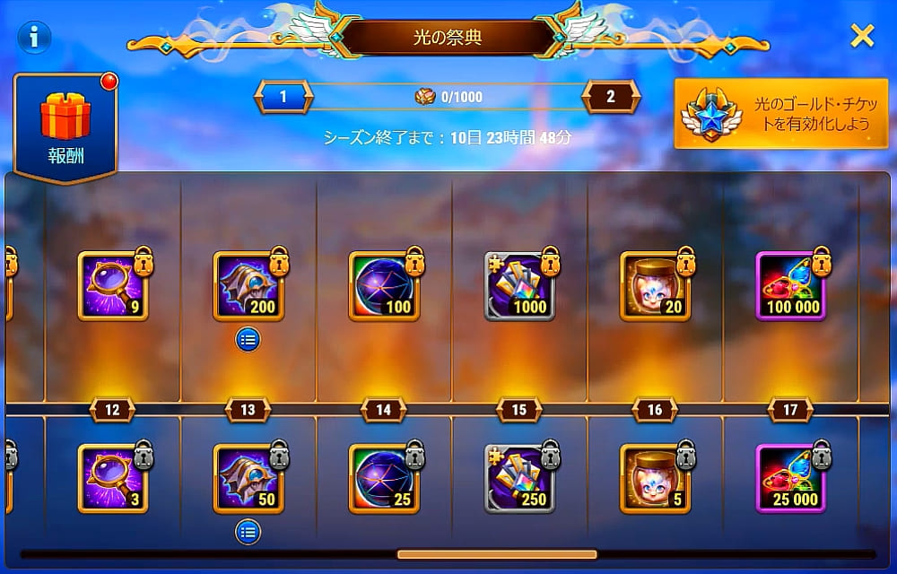 • プレゼント交換のアイテムからドロップする経験値、またはゴールドチケット購入者が買えるイベントバンドルから経験値を獲得する。(たぶん)