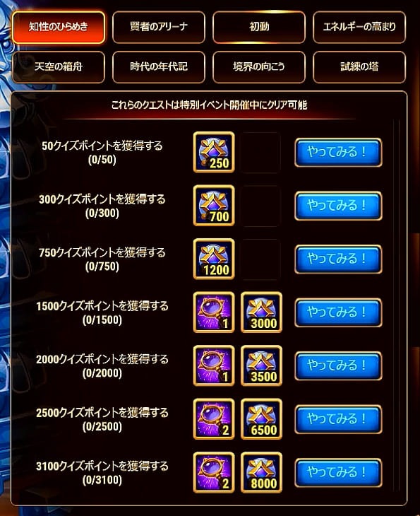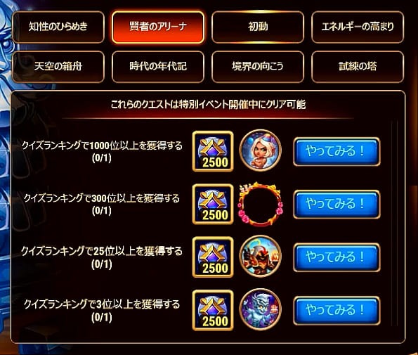 - イベント開始時にすぐにクイズに解答すると簡単に一位になれて、ドミニオン年代記の全てのアバターを獲得できます。