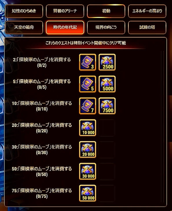 | 6 | 探検家のムーブ | 75 | 15 | 125,000 | |||