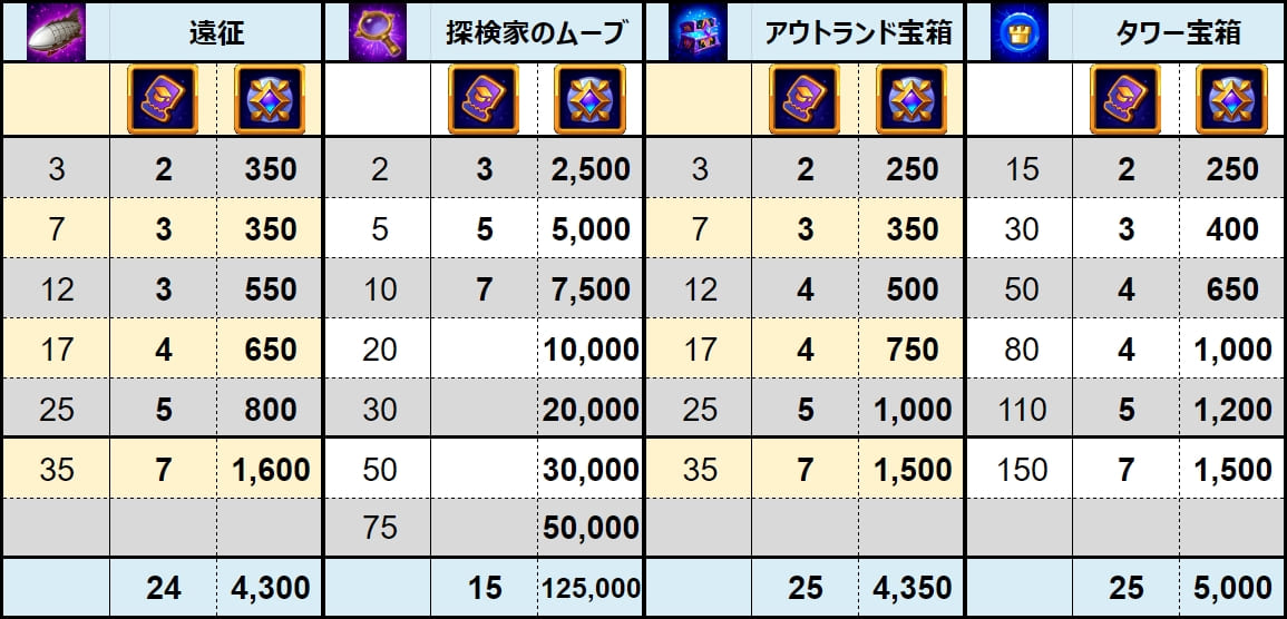 | 8 | タワー宝箱 | 150 | 25 | 5,000 |