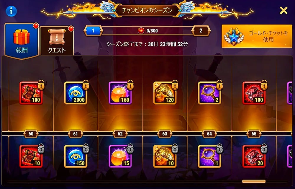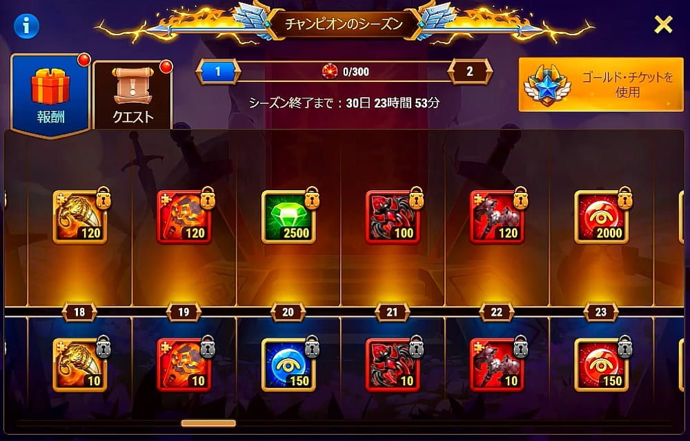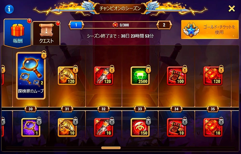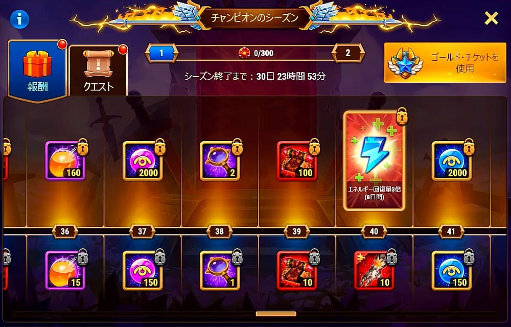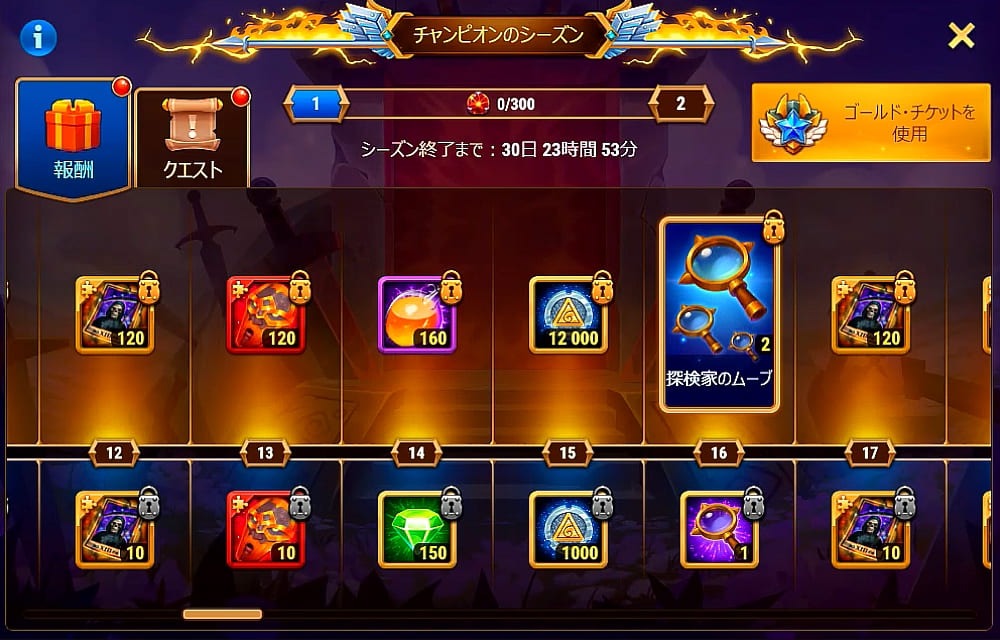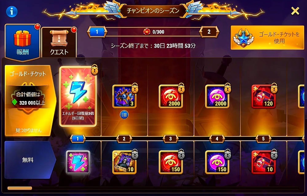 チャンピオンのシーズンのバナーからゴールドチケットを買ったのですが