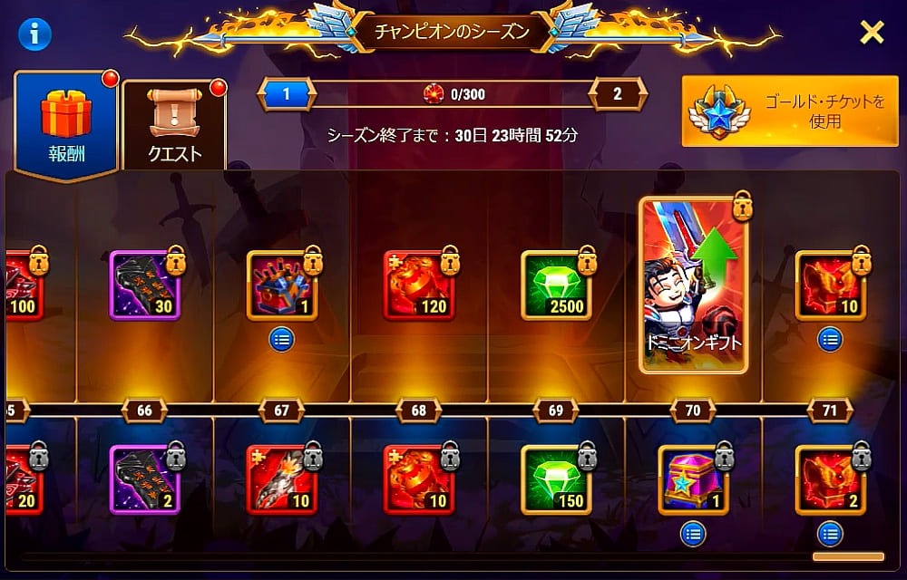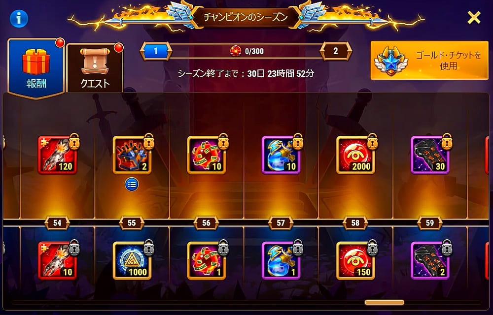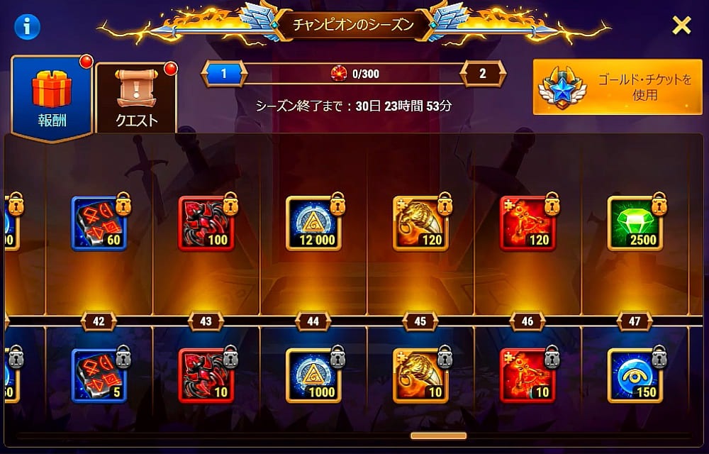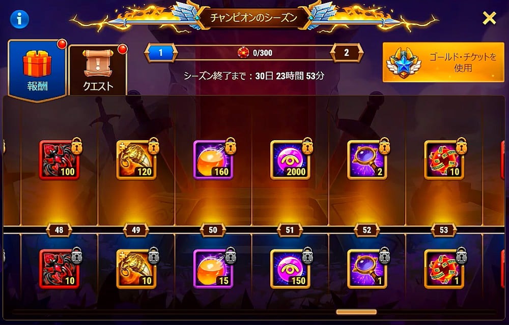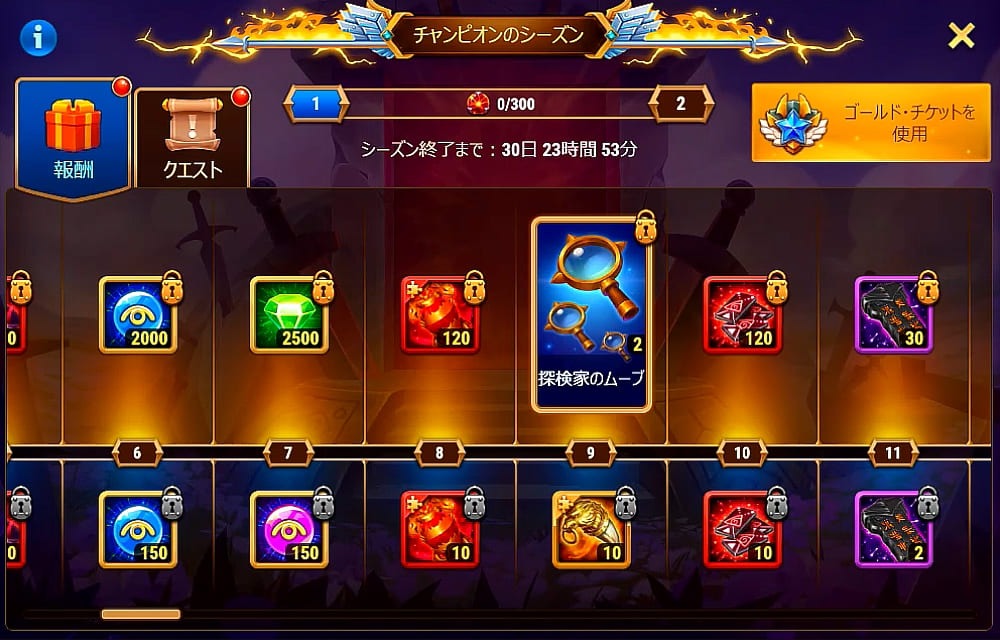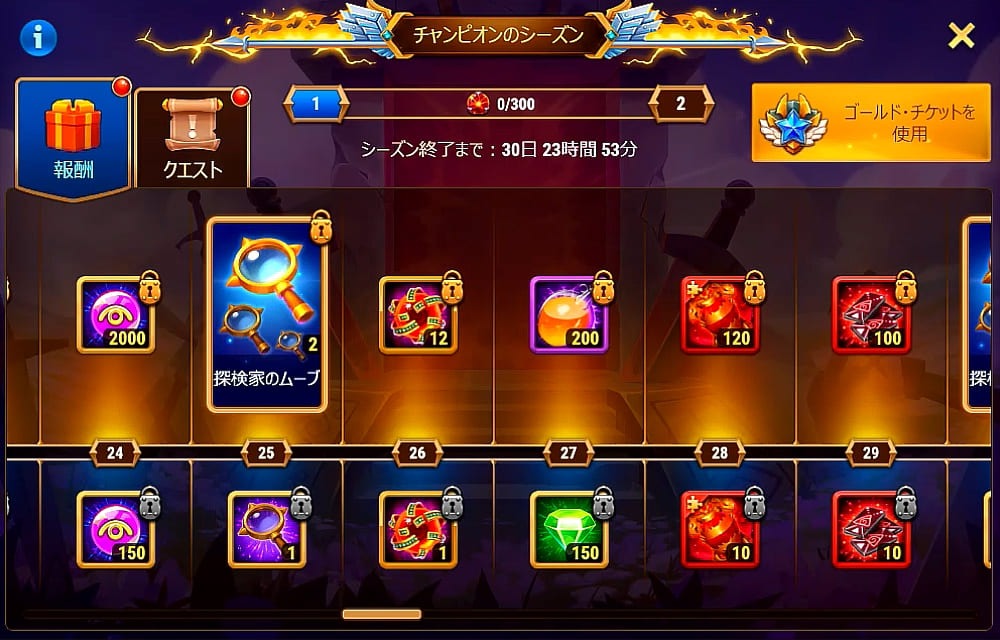 チャンピオンのシーズンのバナーからゴールドチケットを買ったのですが