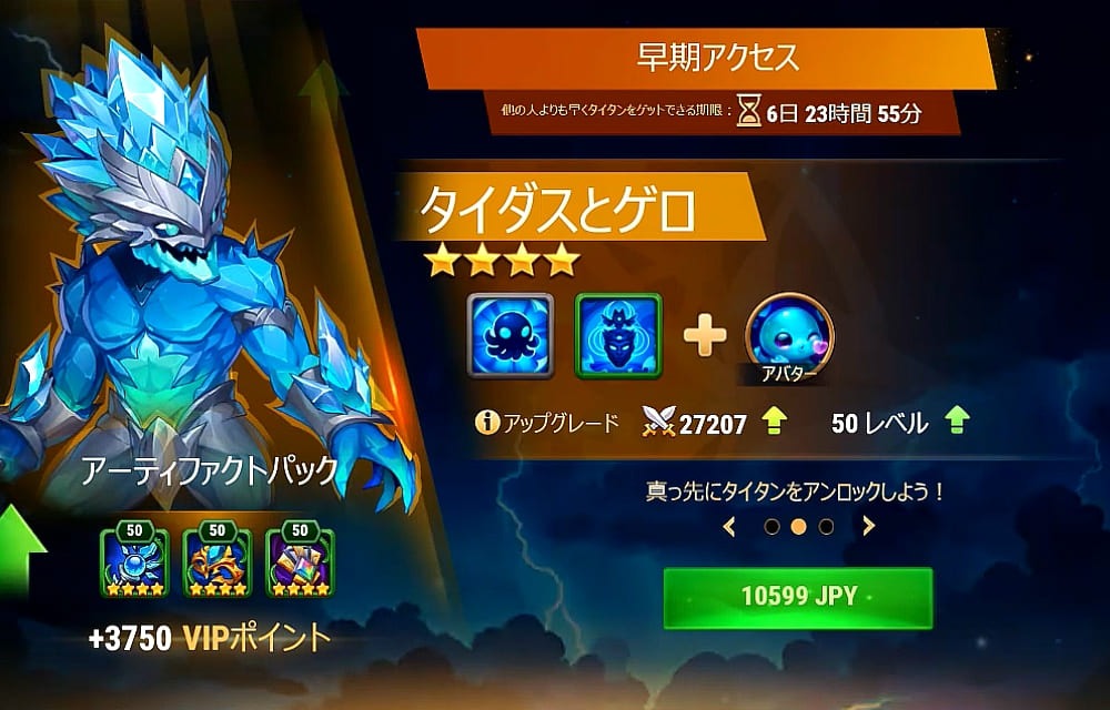 | 3 | タイダススキン Lv up | 60 | 32,800 | 7 | ||