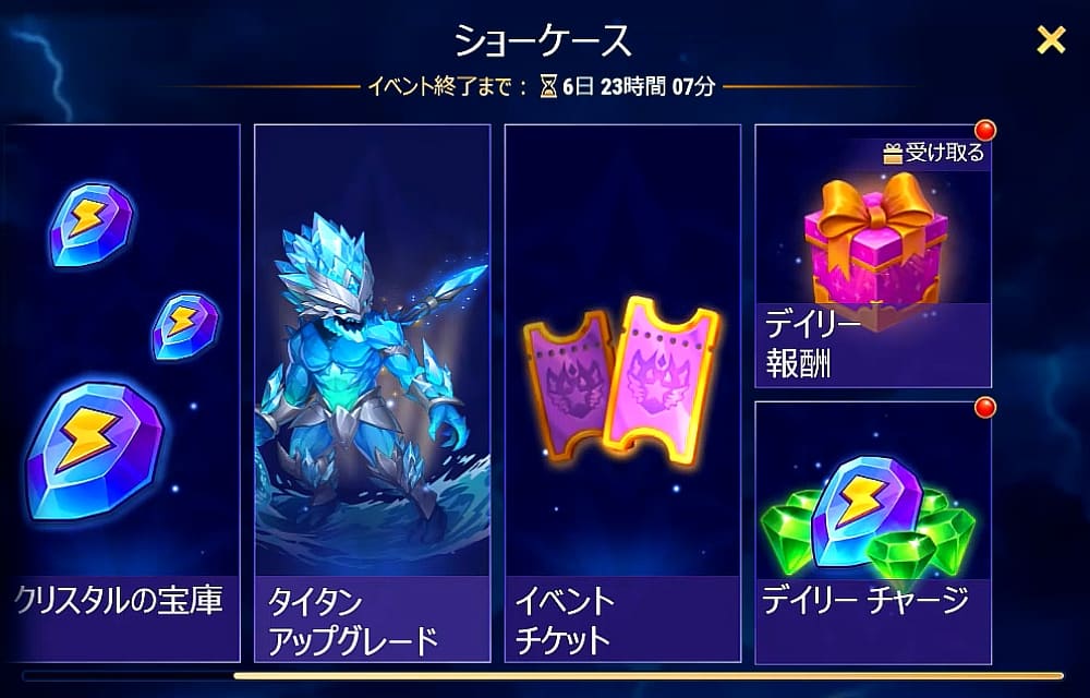 - 毎日のチャージとエネルギー6獲得は24時間でリフレッシュされる。必ず無料分は取りましょう。