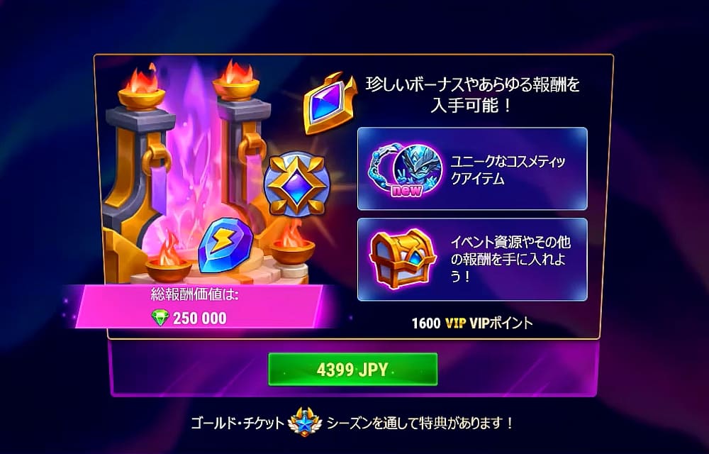バトルパスで1,200個(金券1,000個+無料200個)