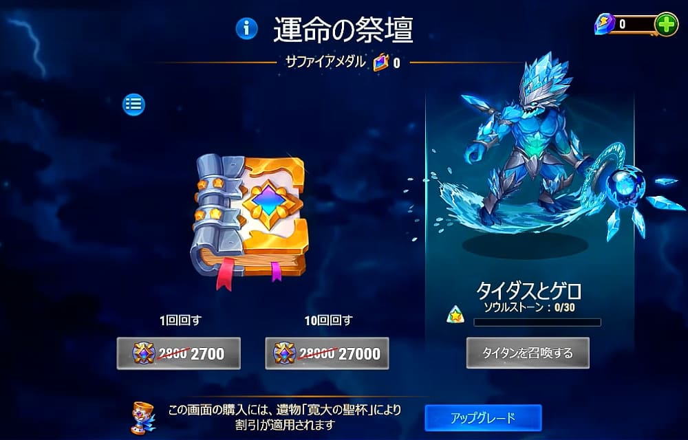 - タイタンアップグレードは、ヴァードックを召喚すると出来るようになる