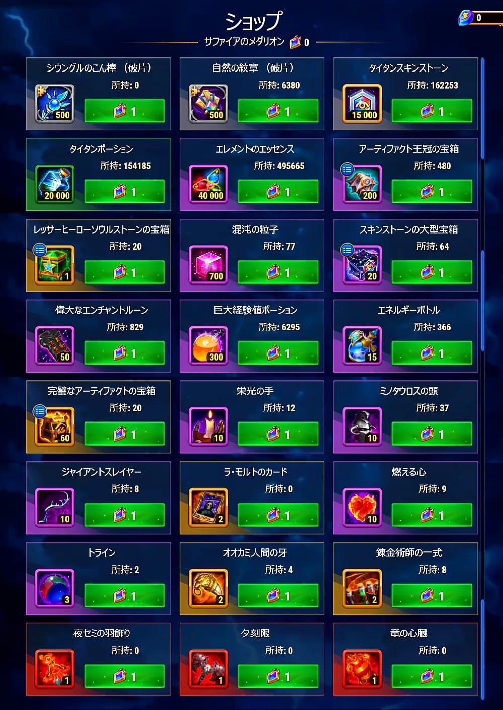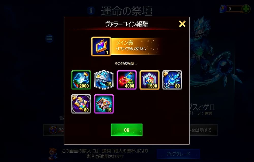 注意:今回はサファイアメダリオンはインベントリに残りません。イベント終了前に必ず使い切ってください。