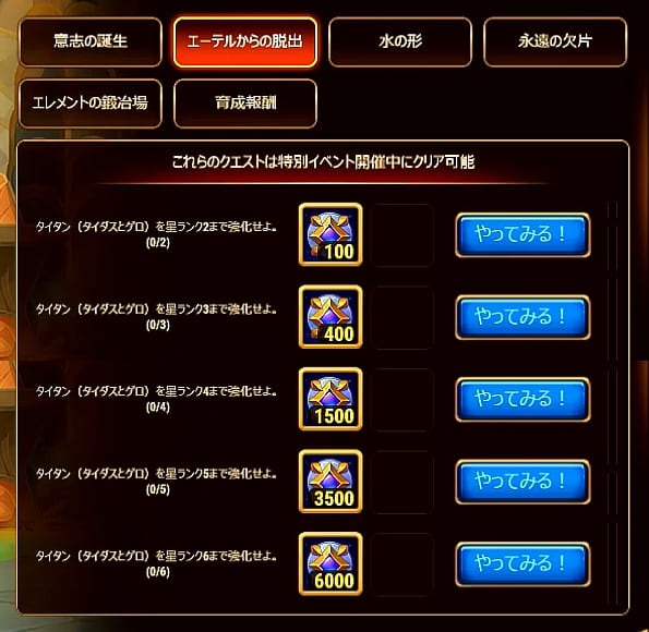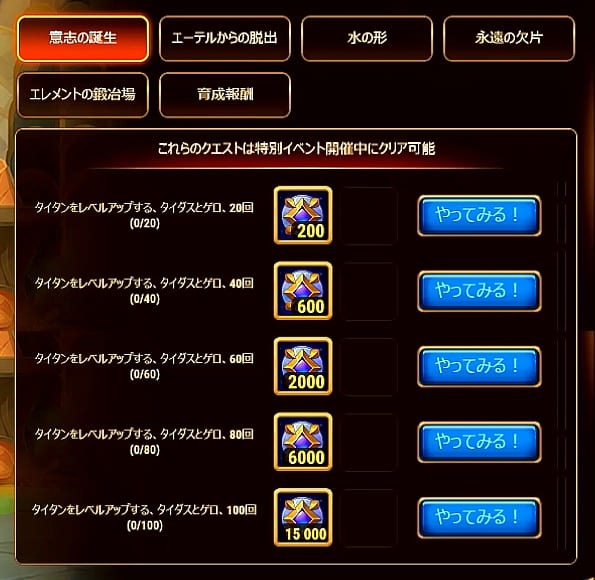 | 1 | タイダス Lv up | 100 | 23,800 | 5 | ||
