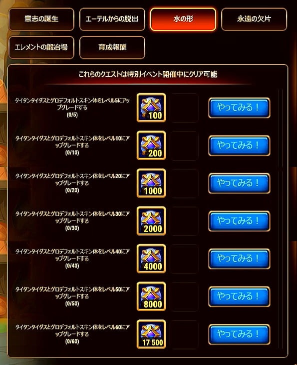 | 3 | タイダススキン Lv up | 60 | 32,800 | 7 | ||