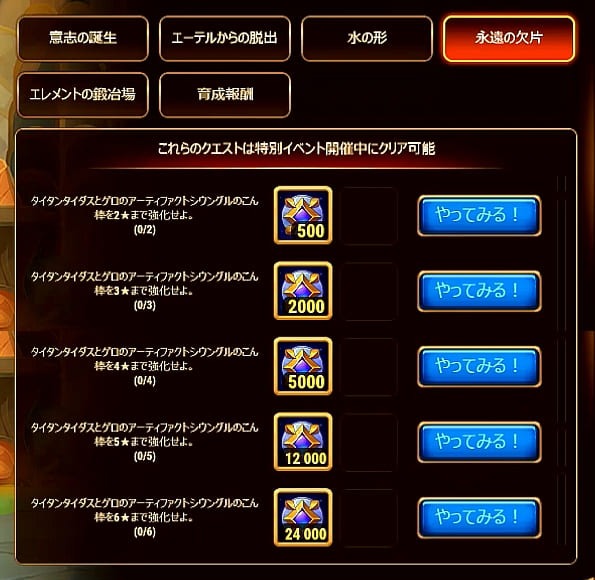 | ★ | ![]() | ソウル石 累計 | 回数 | 回数 累計 | ![]() | 破片 累計 | 回数 | 回数 累計 | |