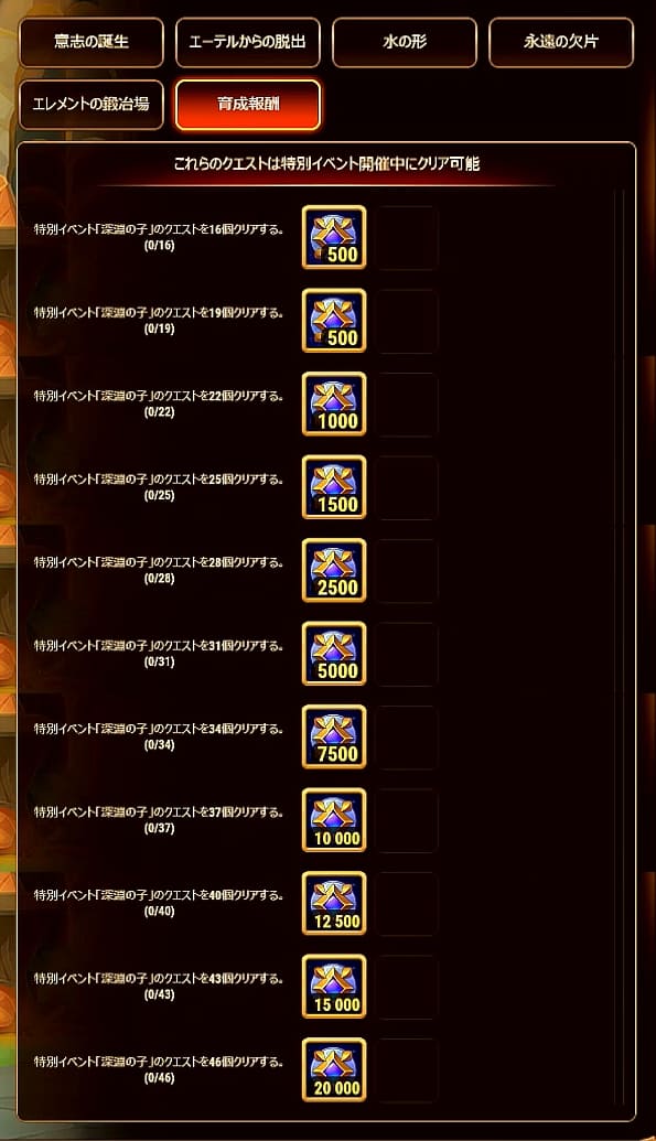 | 6 | クエスト完了数 | 40 | 41,000 | 9 |