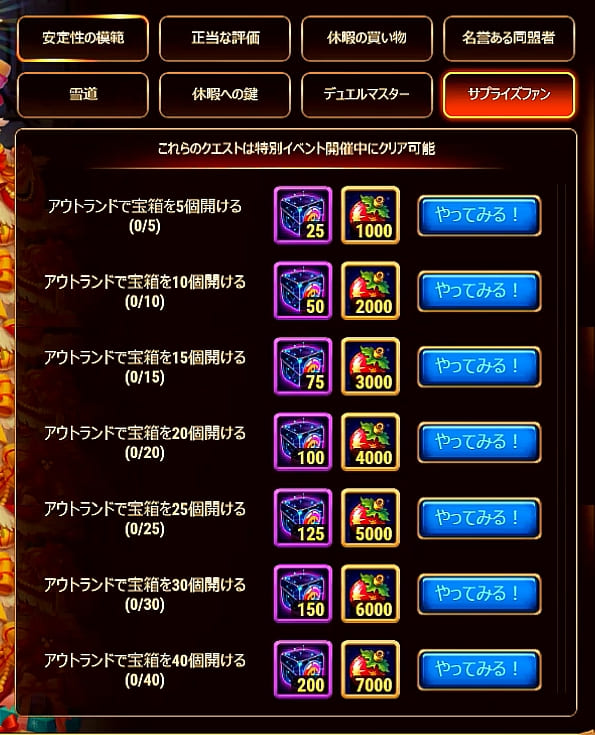 | 8 | アウトランド宝箱 | 40 | 28,000 | 725 |