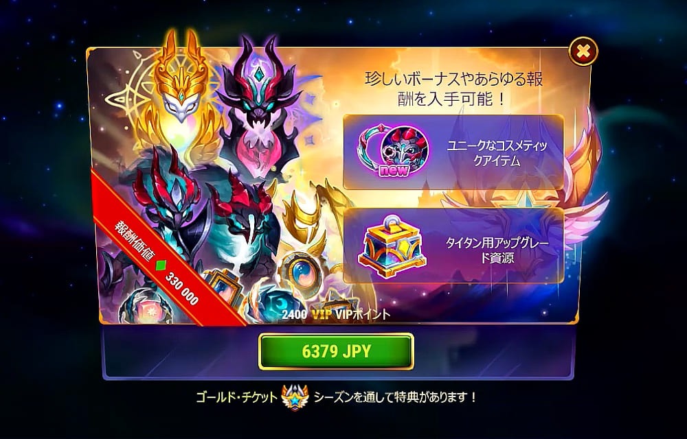 A7.はい、できます。自分でゴールドチケットを購入すると、画面の右側に特別オファーが表示されます。チャンピオンシーズンのゴールドチケットをまだ持っていないギルドメイトを選択して、割引価格で購入することができます。 。その見返りに、あなたは貴重な資源を手に入れるでしょう。ギルドメイトのゴールドチケットは何度でも購入できます。