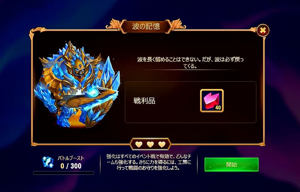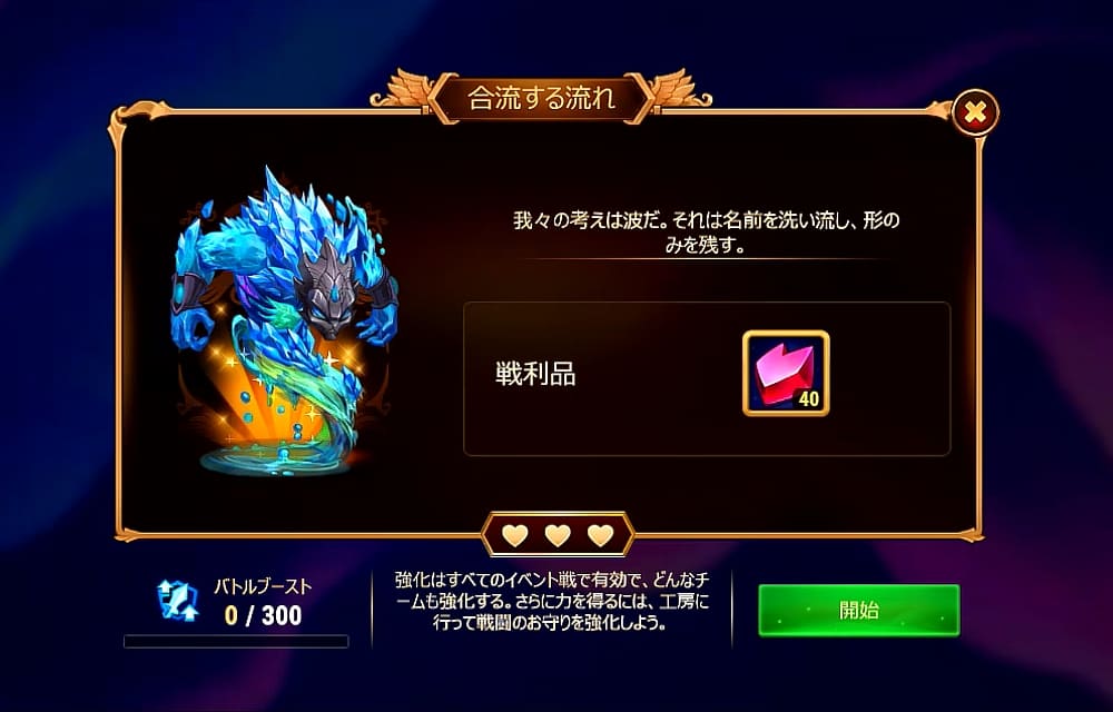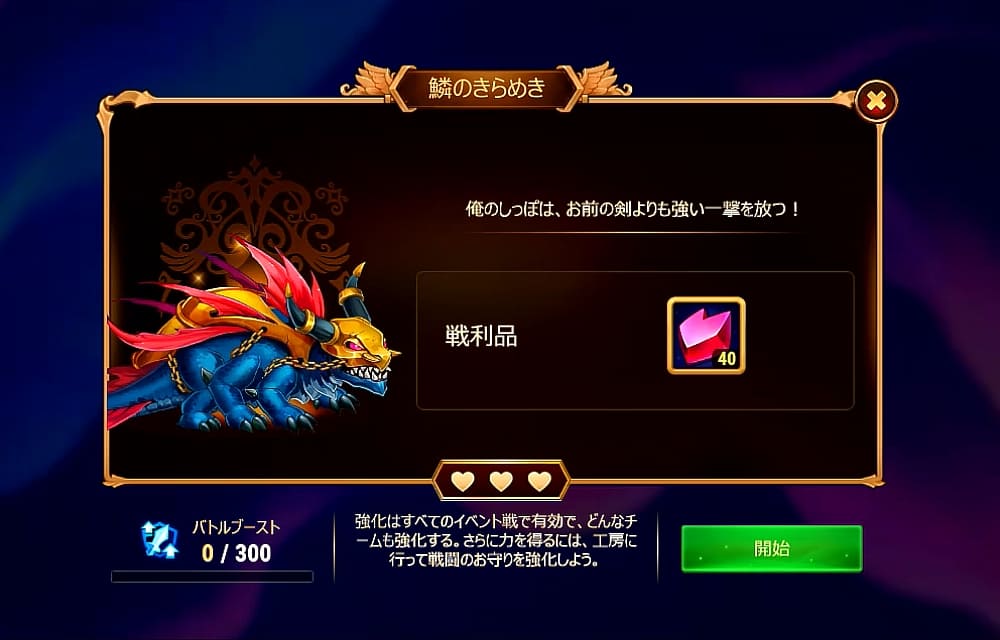 - バトルブーストポイント 10 ポイント = アドベンチャーチェスト 1 個;