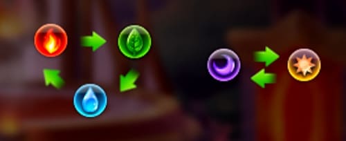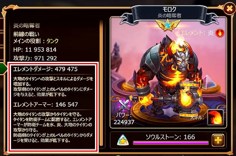 それぞれのタイタンは、水、炎、大地、闇、光のいずれかのエレメントに属しています。