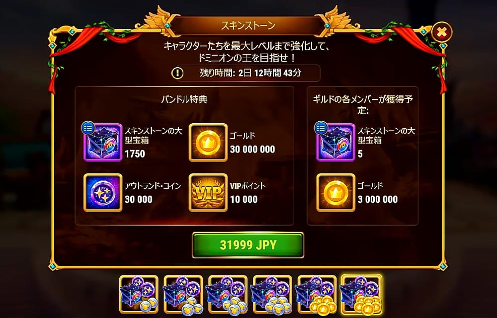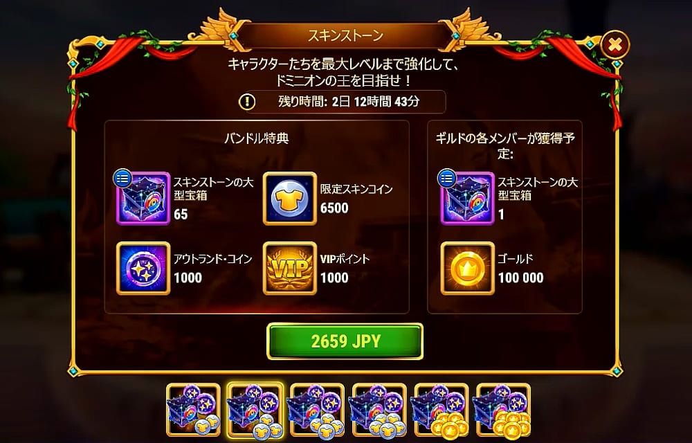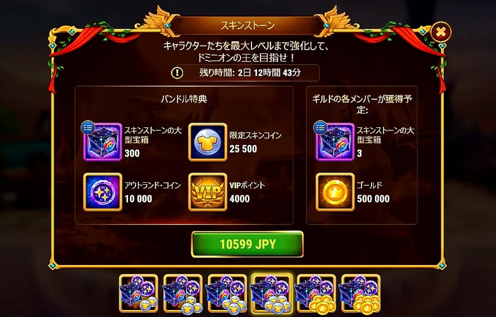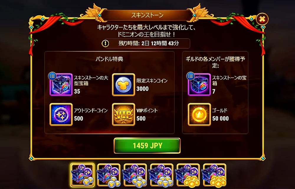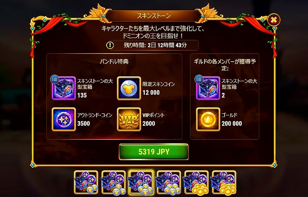 達成クエストの報酬のラストが、選べる箱ではなく3種スキン石3000個だから、