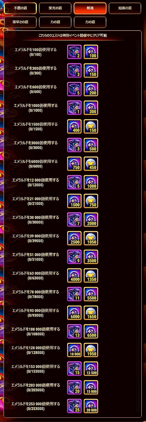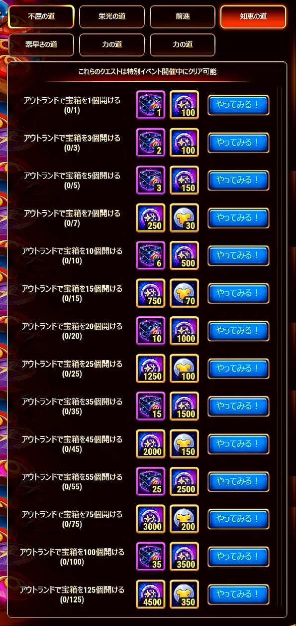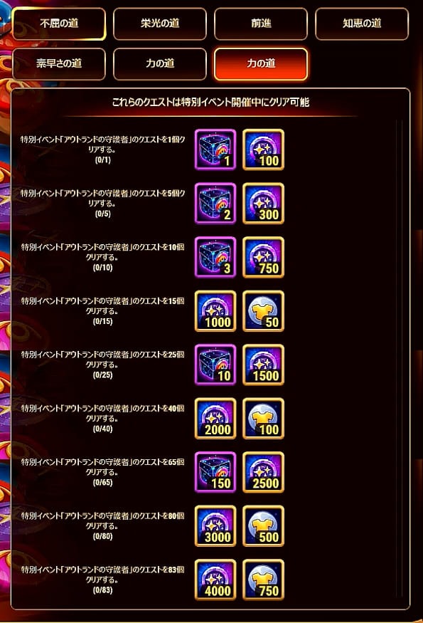 >アウトランドのタスクをすべて消化するには4,560エメラルド必要(180*12+400*6)