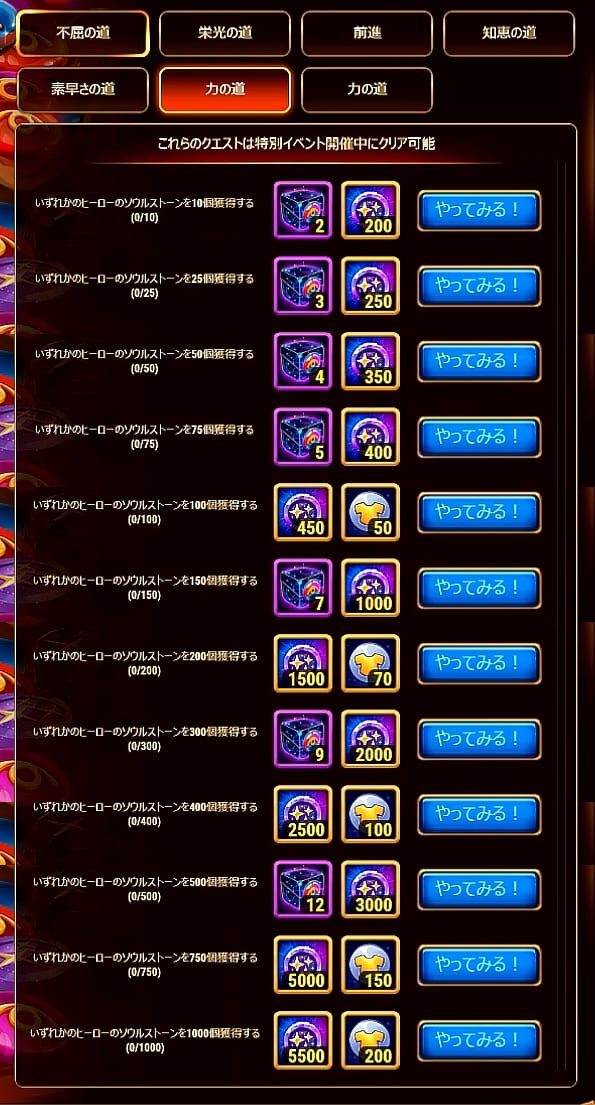 ヒーロー魂石獲得数のクエ数が誤っています。