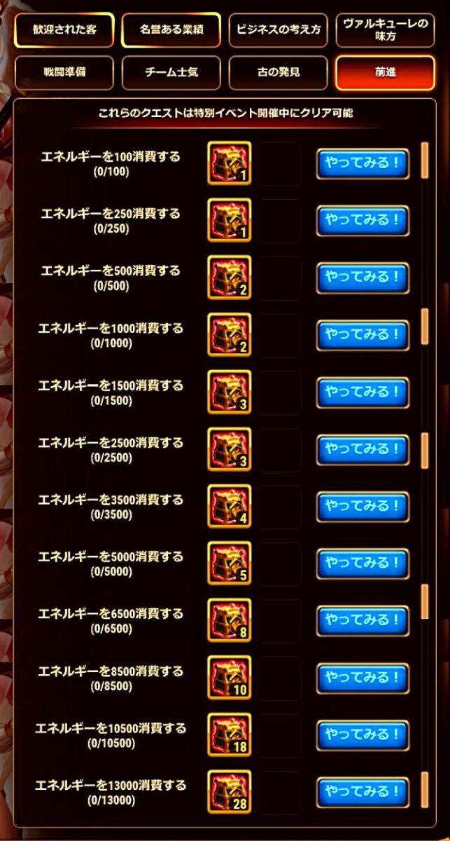 | ログイン回数 | VIPレベル | エメラルド消費 | 遠征数 | ||||||||