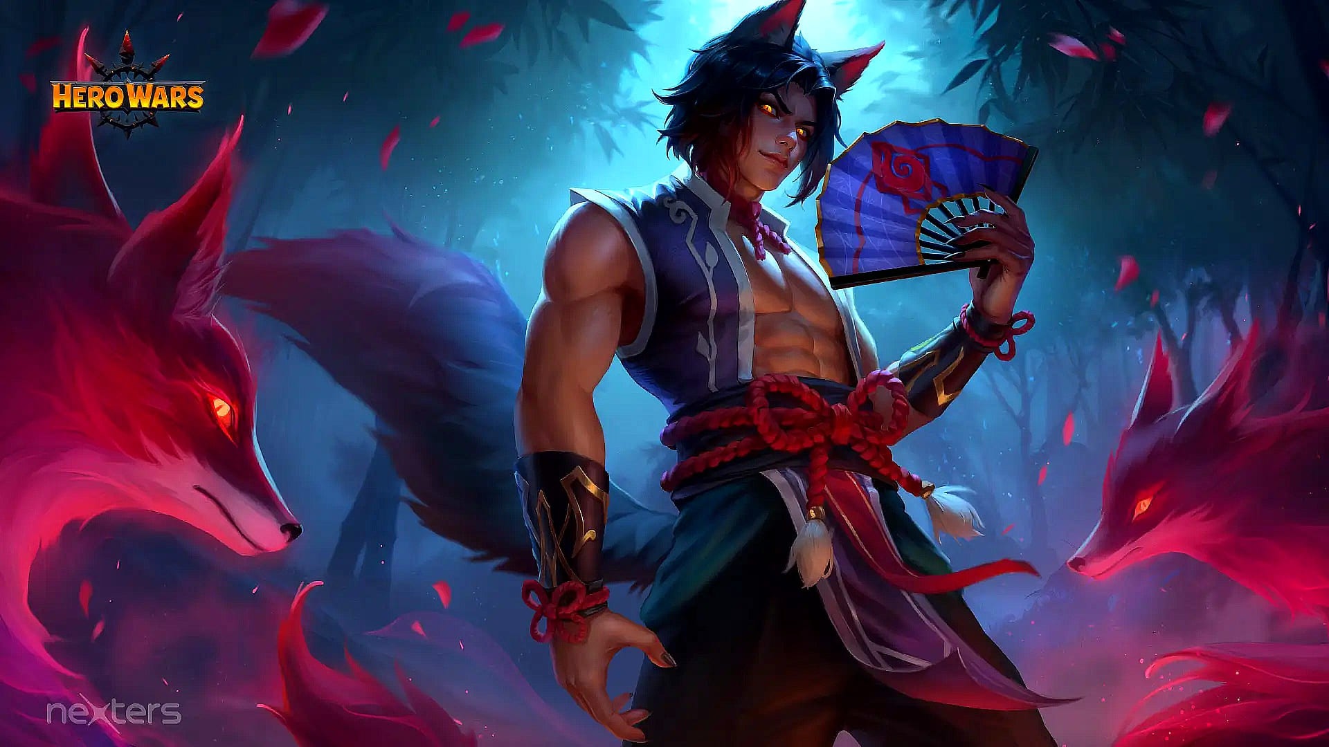 ヒーローの基本攻撃は魔法ダメージを与え、敵に狐火の印(1個)を与える。スキルを発動すると、敵は与えられた印ごとに魔法ダメージを受ける