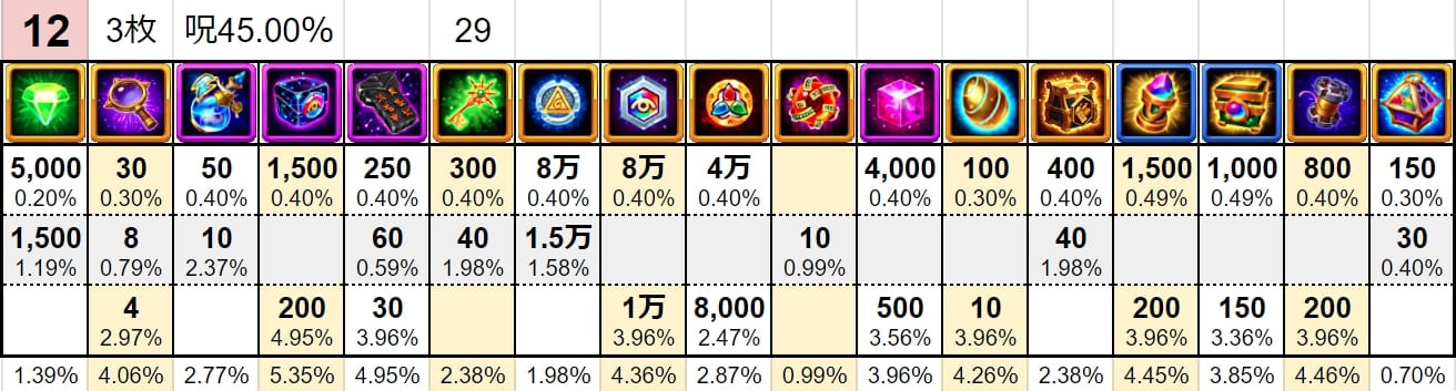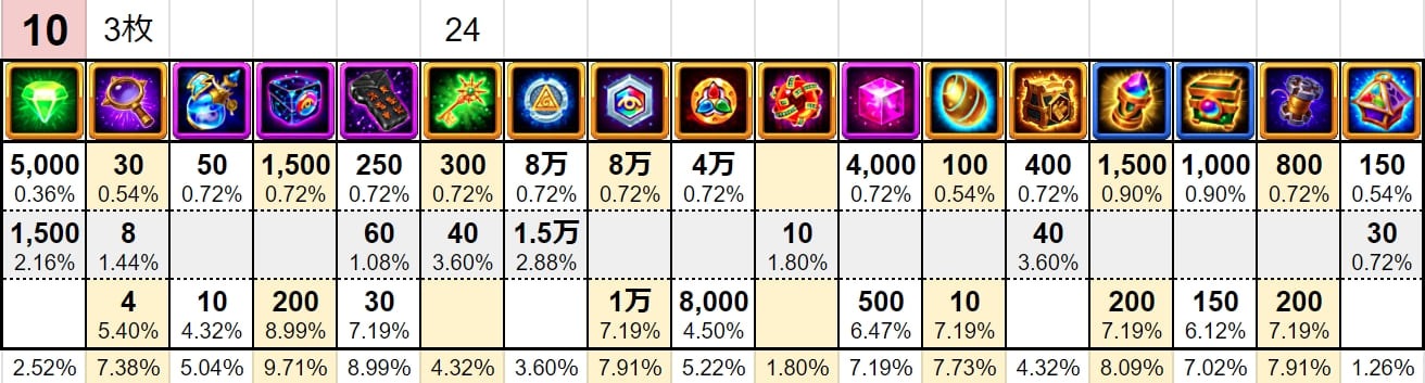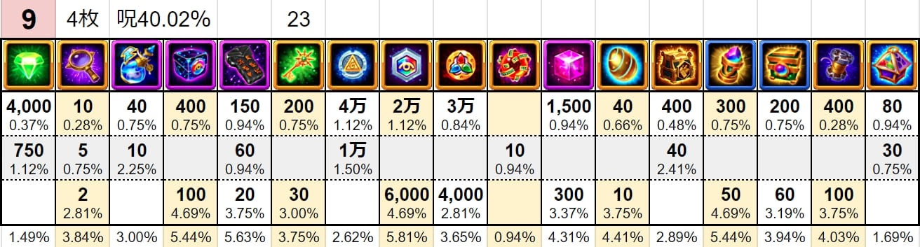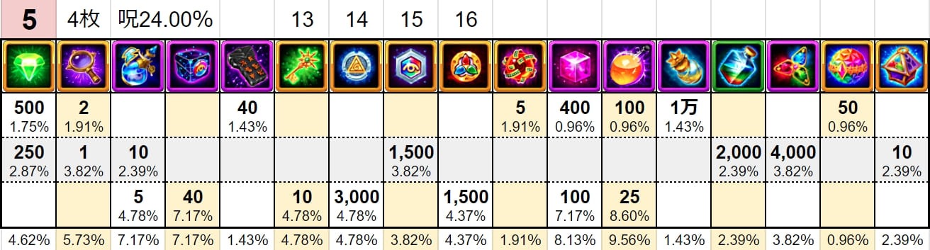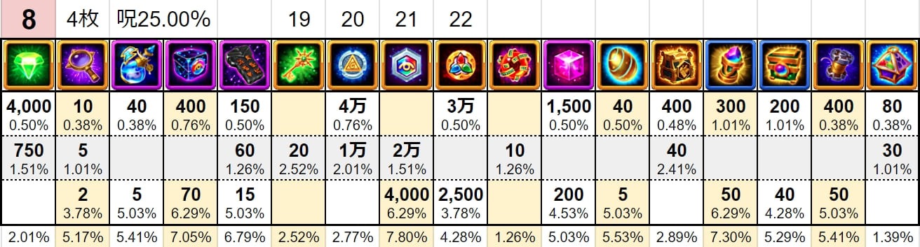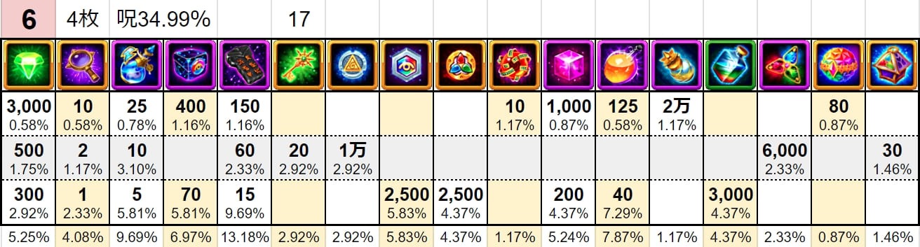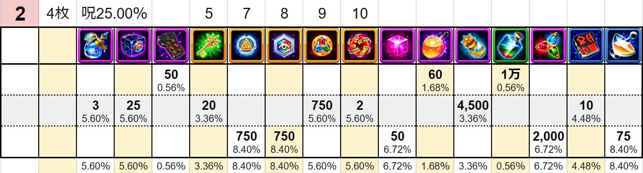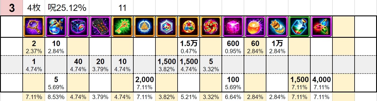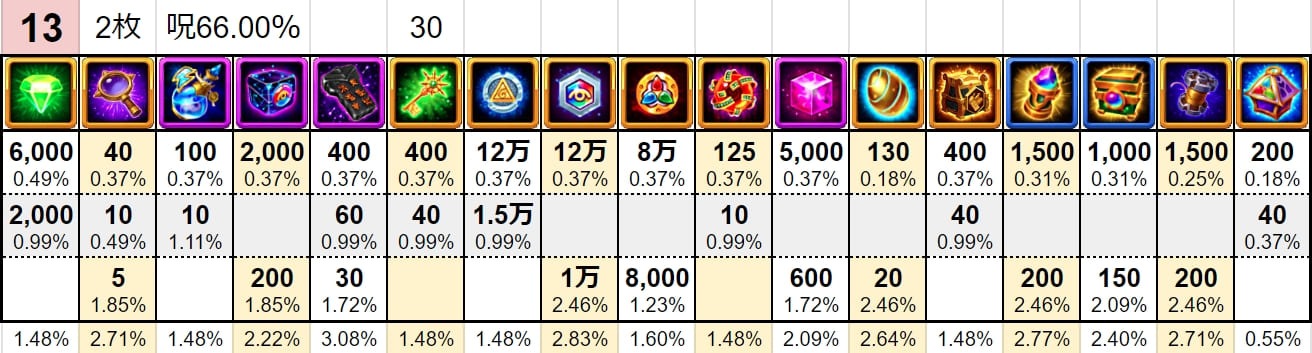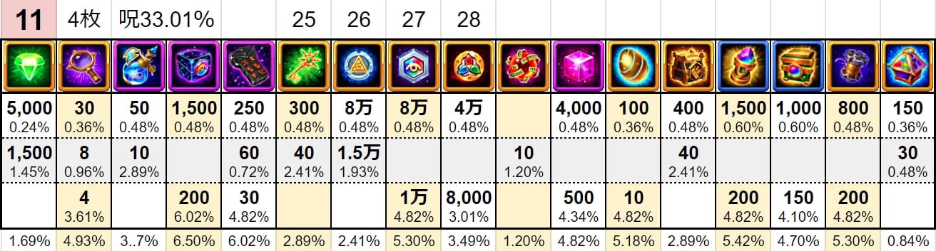 ラウンド数 | 呪いのカード | 報酬のテーブル | カード枚数 |
