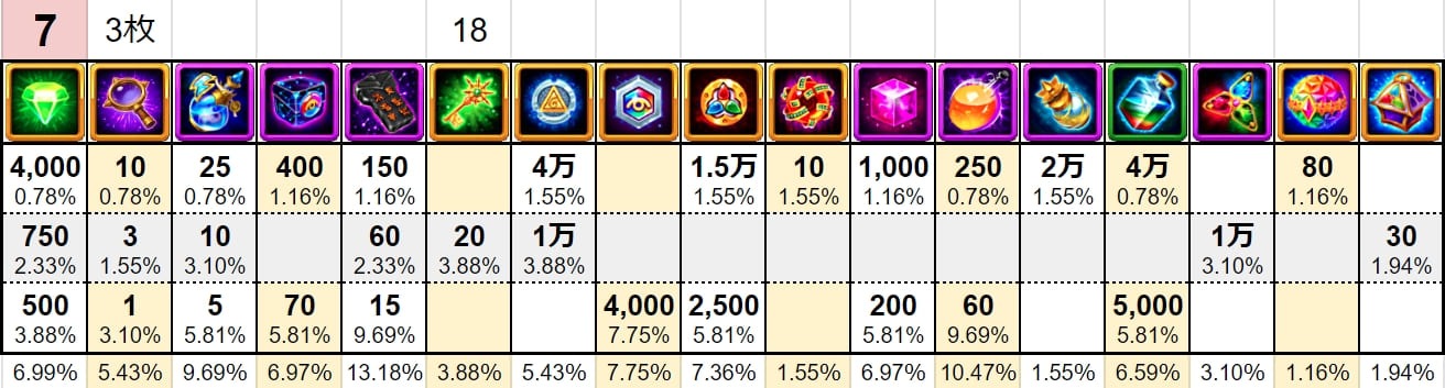 7 | 完全勝利回数 | ![]() | 7 | 1/30/30/1/1/2![]() ![]() ![]() ![]() ![]() ![]() | 7 | ||