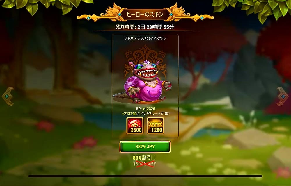 一番高いものを買えば、エメラルド x4 に、チャパのスキンをおまけしてやるわw 程度の感覚かもしれませんね、運営様は。