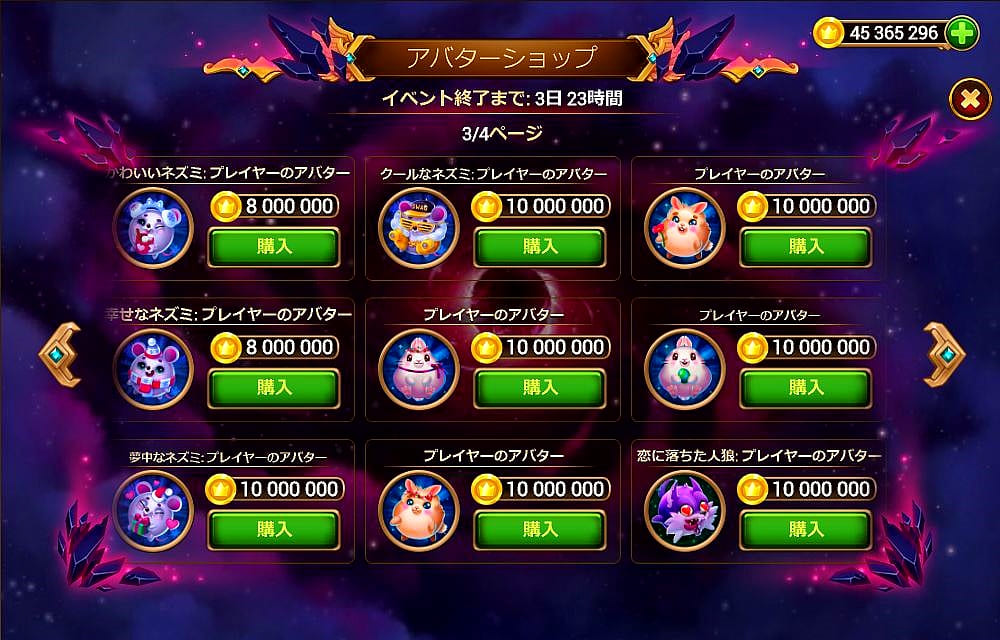 | クエスト | コスト | 56![]() | 22,175![]() | 48![]() | 22,500![]() | 800![]() | ||||