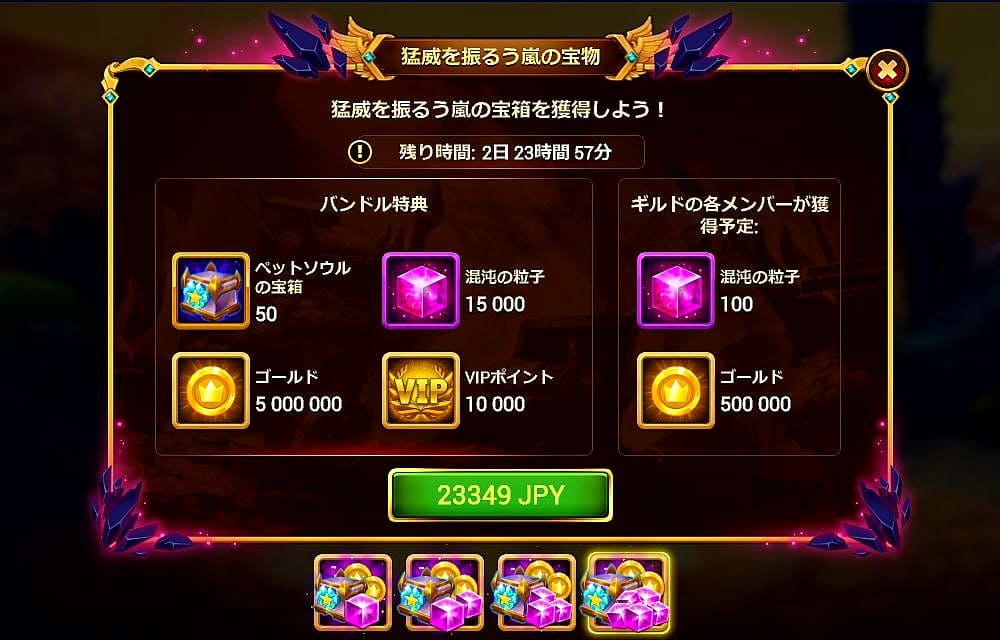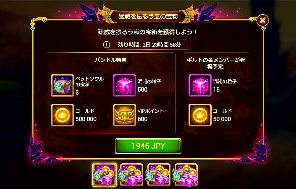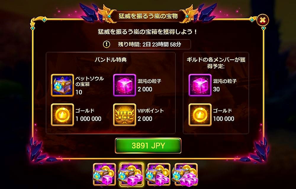 嵐は前は唯一のペットイベントだから頑張ったけど、ポータルの異変とかに比べると粒子も少ないし、ギルドクエストで毎日のポータルも2つ貰えるようになったからあまり価値無くなったな。ソウルストーンももうカンストしたし、混沌の粒子も2000個くらいしかもらえないし。