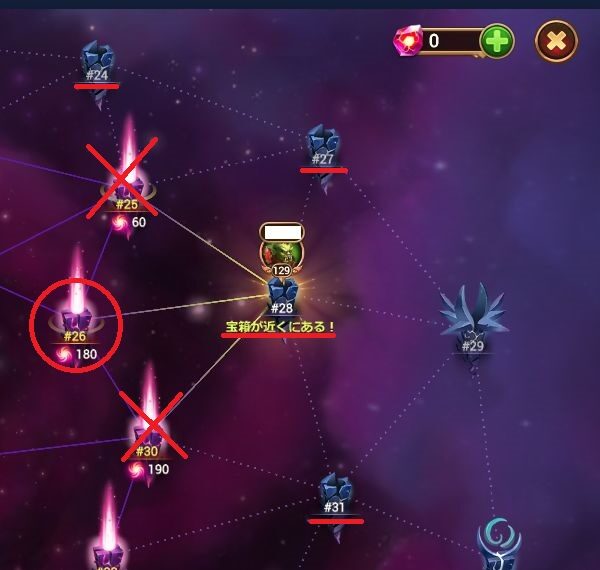 無課金・微課金の方は、中央のボスは狙わず小さい宝箱を4~5個獲得するのを目指してみて下さい。
