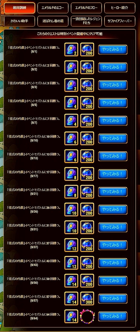 注意:今回はサファイアメダリオンはインベントリに残りません。イベント終了前に必ず使い切ってください。