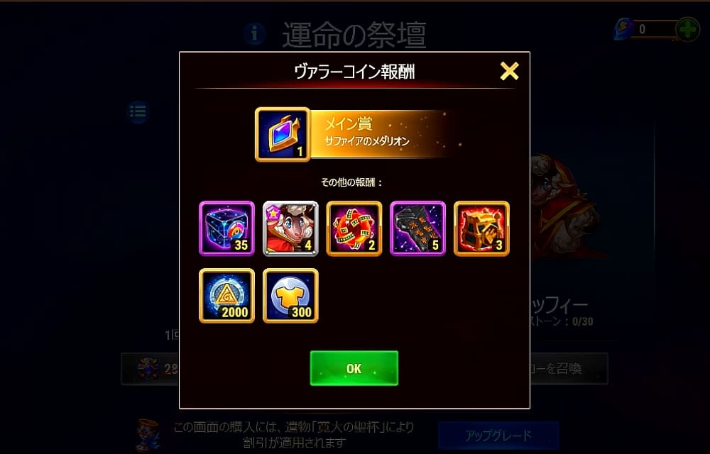 注意:今回はサファイアメダリオンはインベントリに残りません。イベント終了前に必ず使い切ってください。