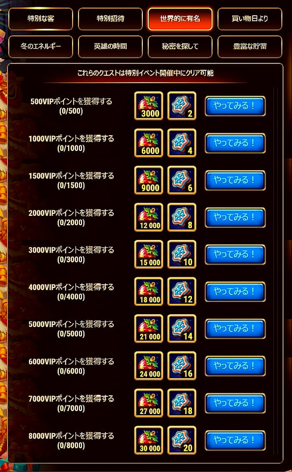 | 3 | VIPポイント | 8,000 | 165,000 | 110 | |||
