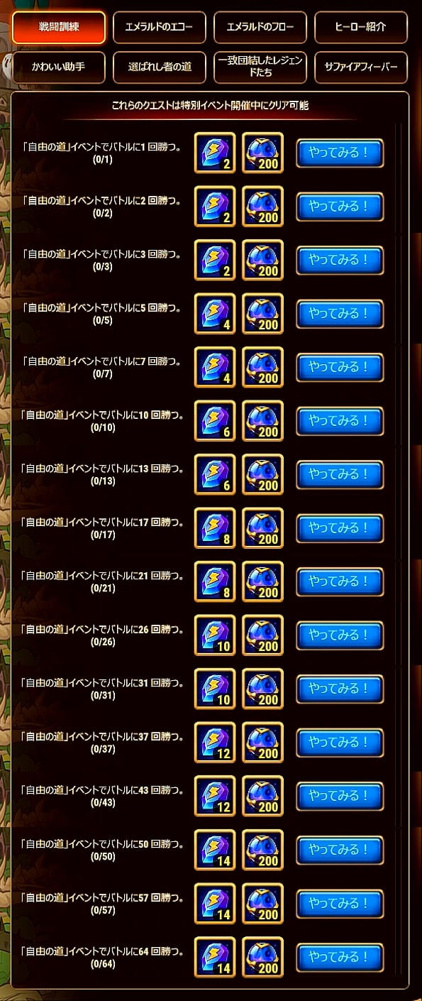 | 1 | イベントバトル 勝利回数 | 64 | 128 | 3,200 | |||