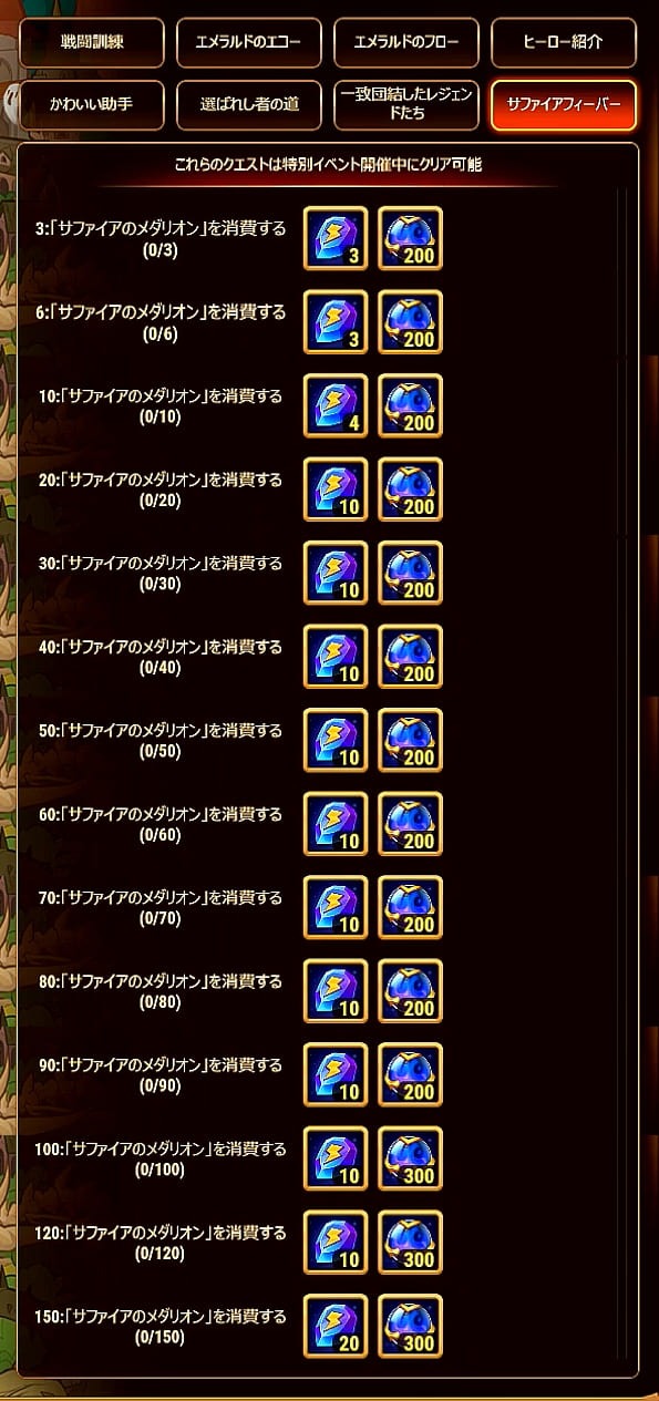 | 8 | サファイアメダル消費 | 150 | 130 | 3,100 |