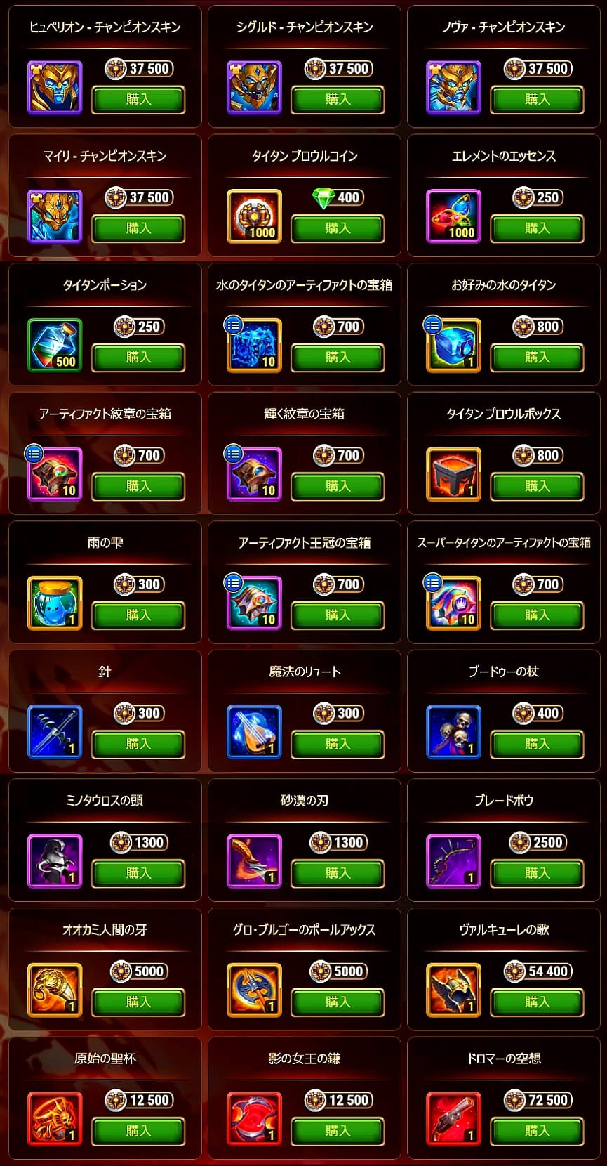 | 6 | タイタンスキン Lv up | 40 | 1,130 | |||